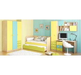 Коллекция мебели с акцентами небесно-голубого цвета понравится маленькому спортсмену, исследователю или музы..
