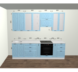 Размер кухонного гарнитура: Ширина 2400 мм. Высота 2132 мм. Глубина 600 мм. (с учетом столешницы)