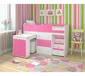 [name] => Кровать-чердак Малыш 1600 Белое дерево/Розовый