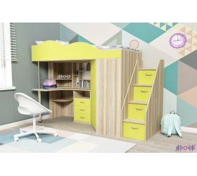 [name] => Кровать-чердак Кадет-1 с металлической лестницей Дуб молочный/Лайм